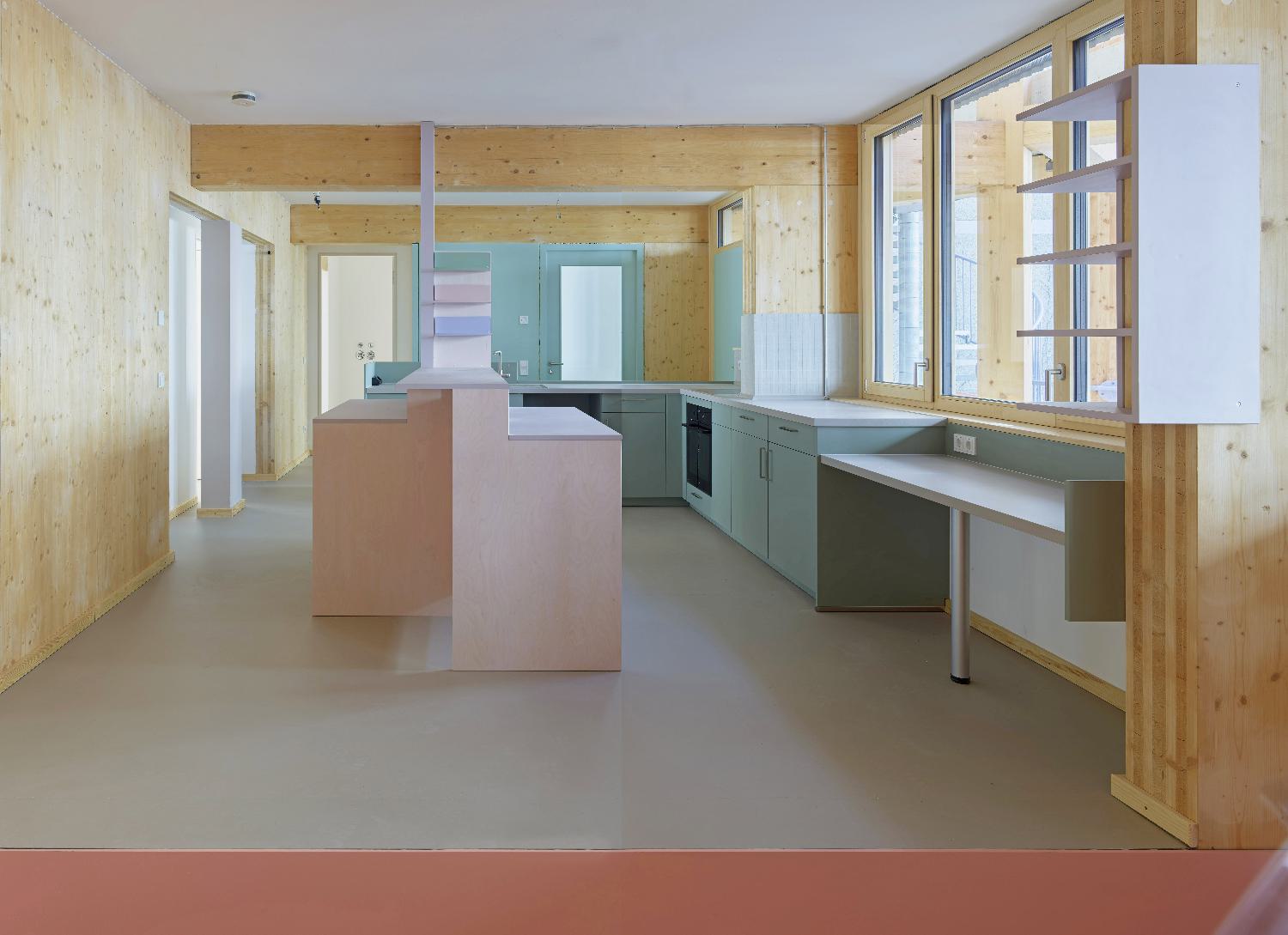 Alle Obergeschosse CLT Holzbau auf massivem Erdgeschoss.